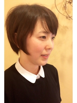 少しだけ前下がりにカットしてます。ストレートアイロンで毛先を内巻きにしてるので柔らかい動きが出るようにスタイリングしてます。